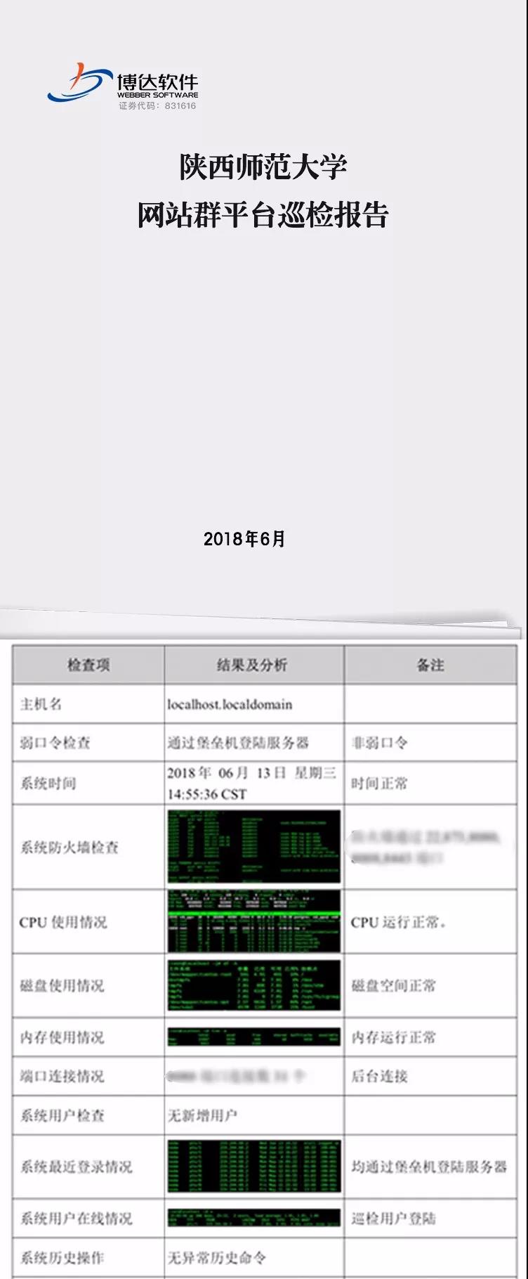 出具巡检报告是整个巡检过程的最后环节,CPU运行正常、磁盘空间正常、内存运行正常、系统无异常历史命令…所有检查项结果逐一出现在最后长达7页纸的巡检报告中,这让老师们可以清楚查看各巡检项的详细情况,从而在以后的日常操作和维护中做到全盘掌控、有的放矢。